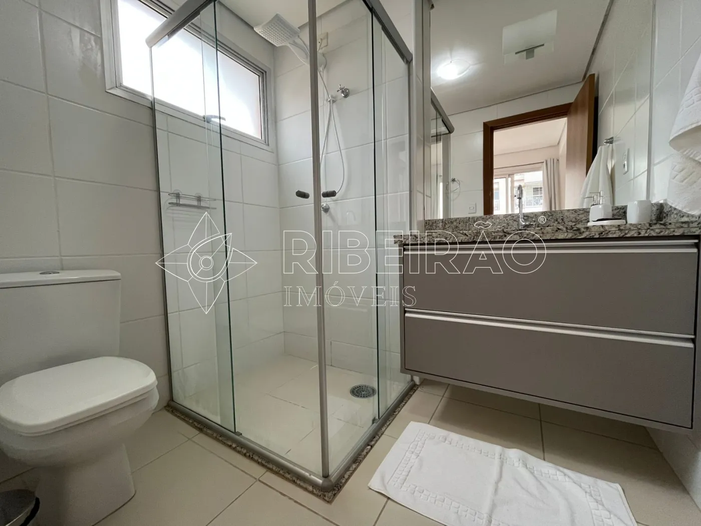 - 1 banheiro com armário, box e espelho;