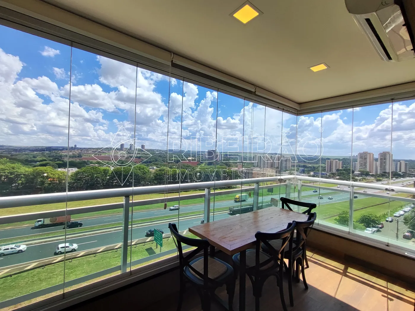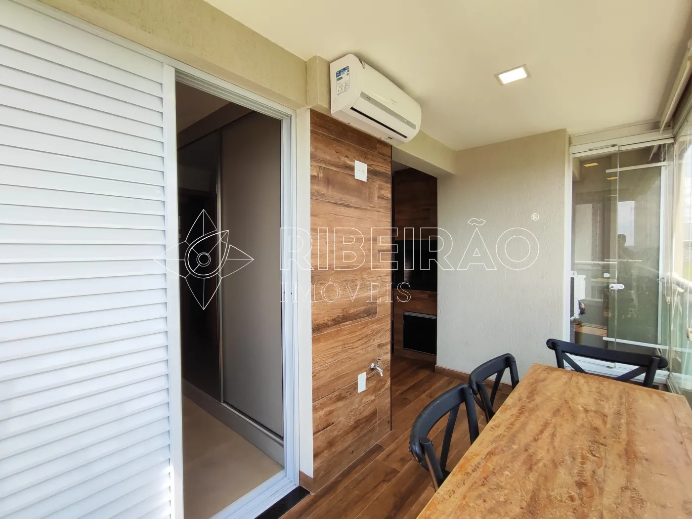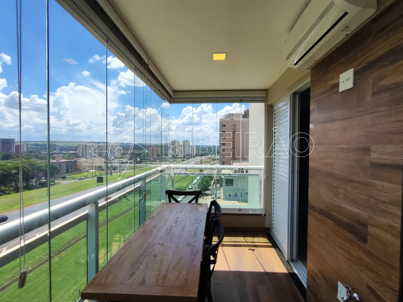 - Sacada gourmet fechada em vidro com ar-condicionado;