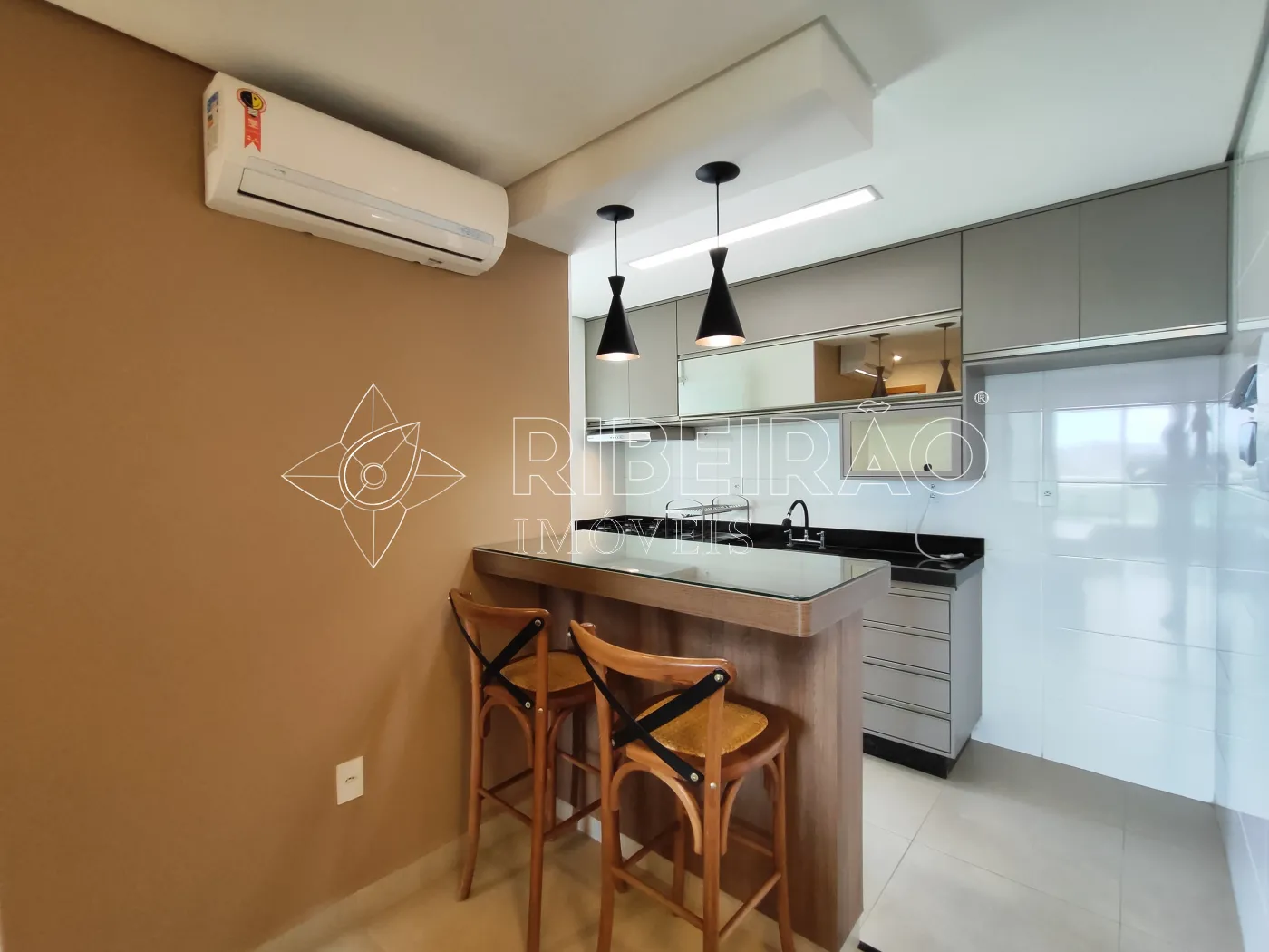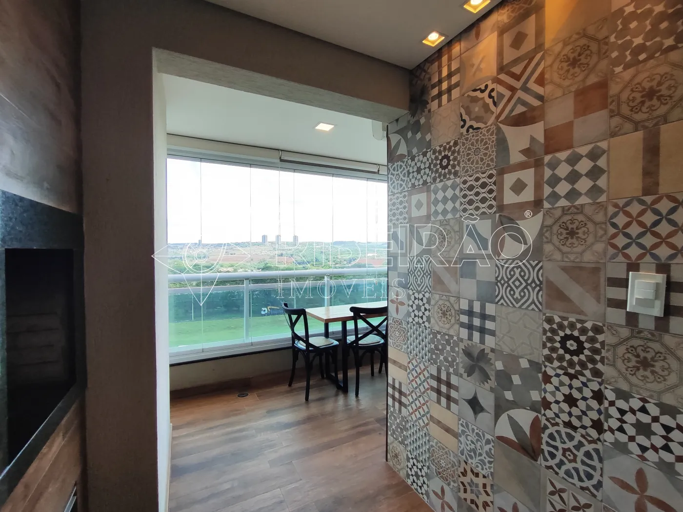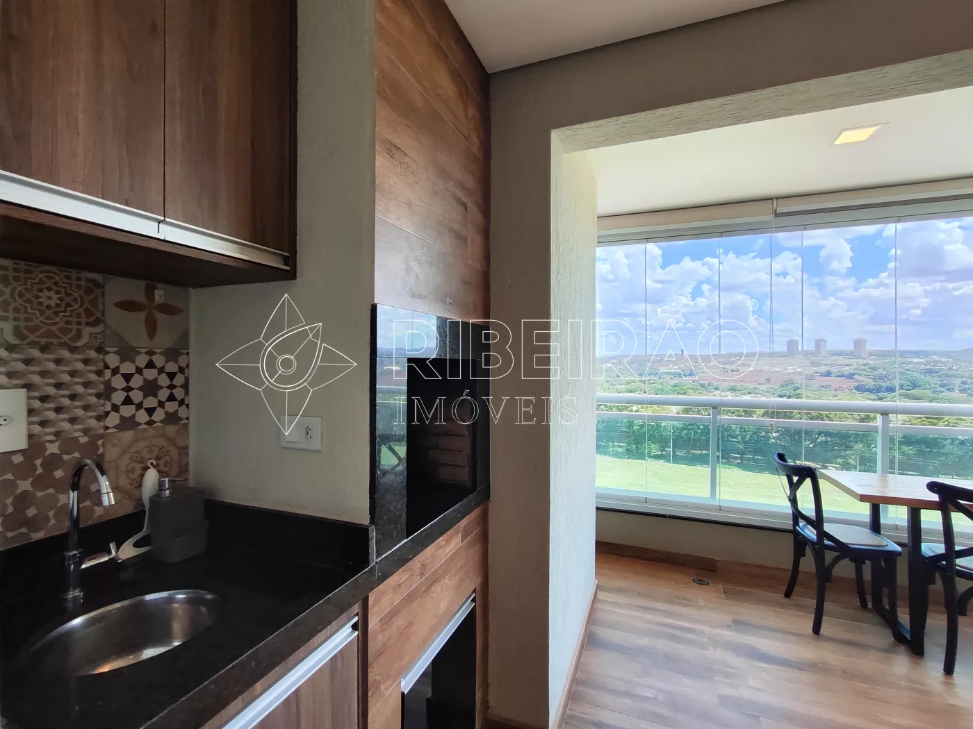 - Sacada gourmet fechada em vidro com ar-condicionado;