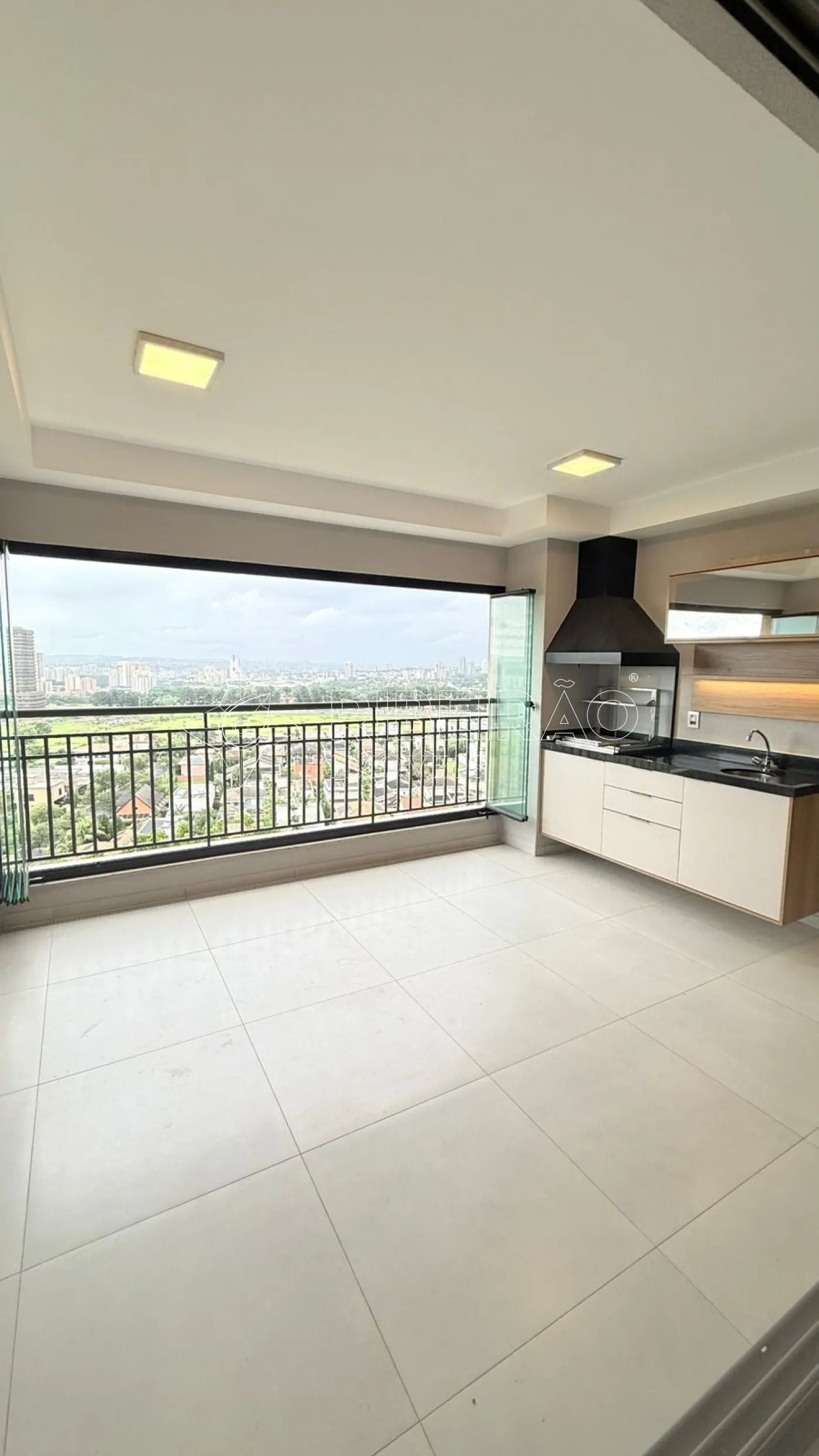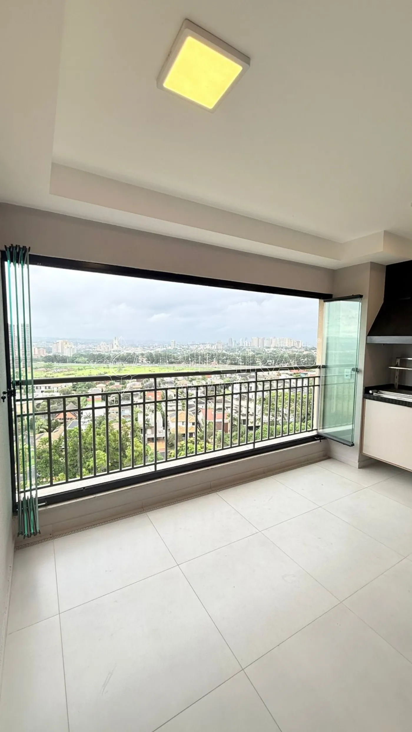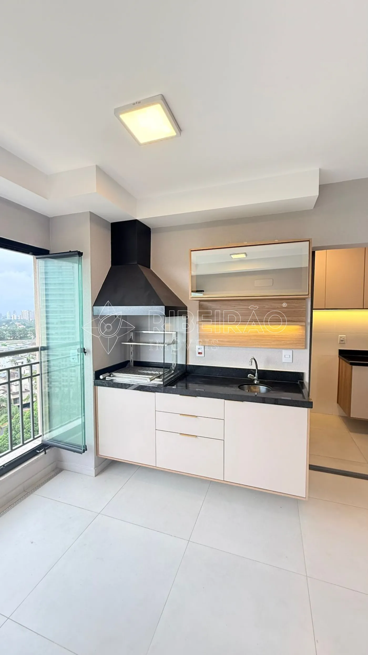- Varanda gourmet com fechamento em blindex, ar condicionado, churrasqueira a carvão e armário planejado