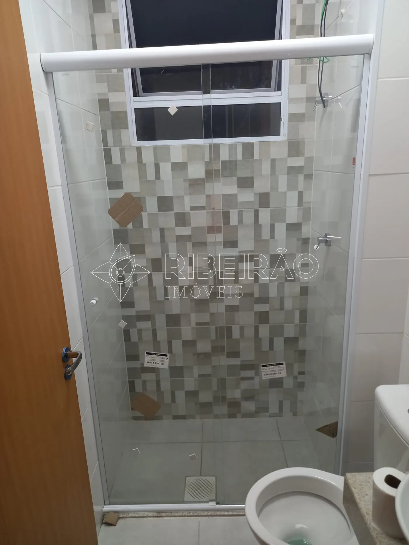 - Banheiro com armários, box e espelho