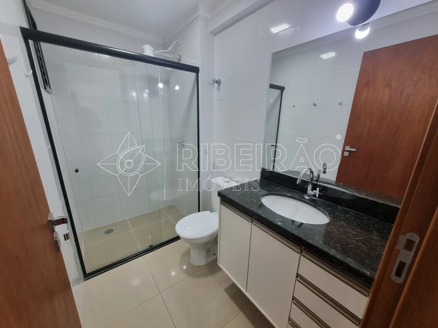 - 1 banheiro com armários, box e espelho;