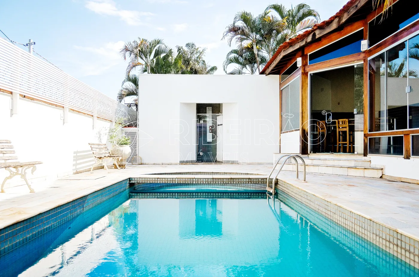 - Piscina com cascata e hidro