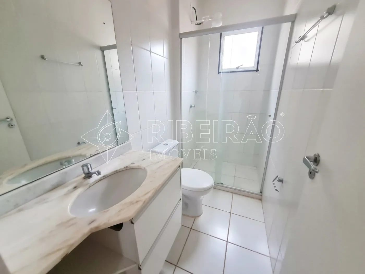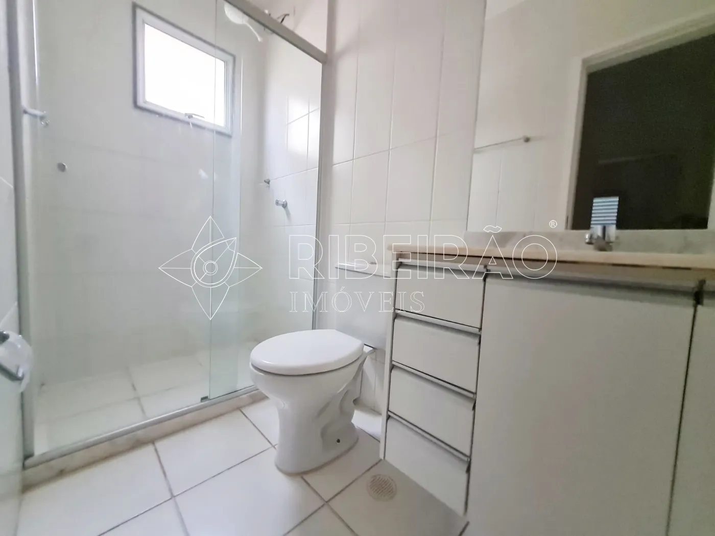 - banheiro social com box em vidro e gabinete;