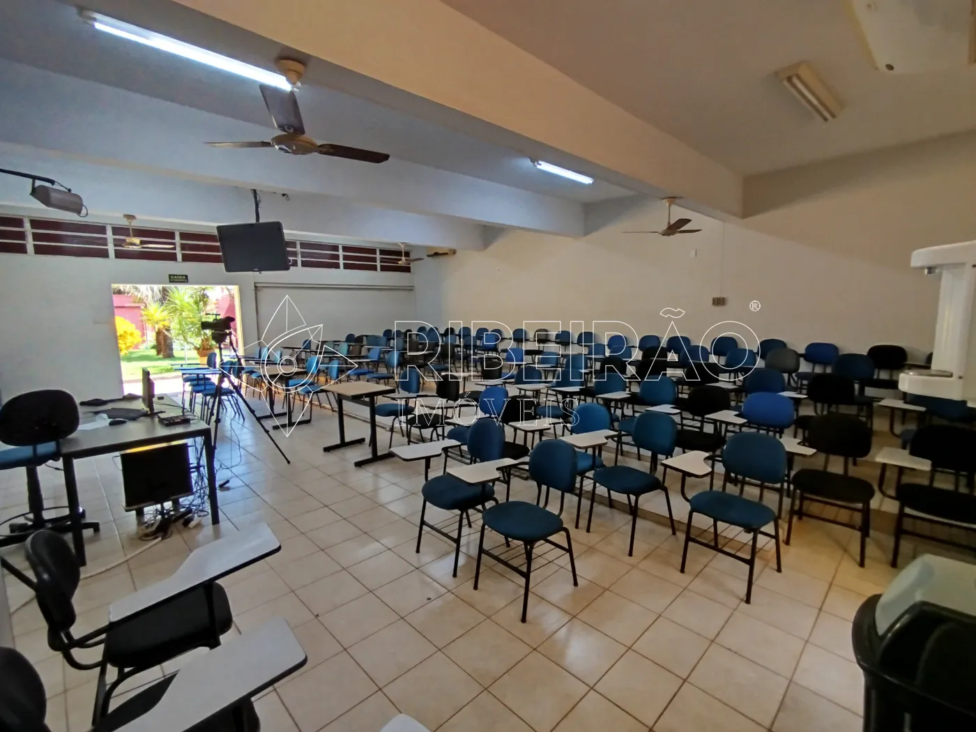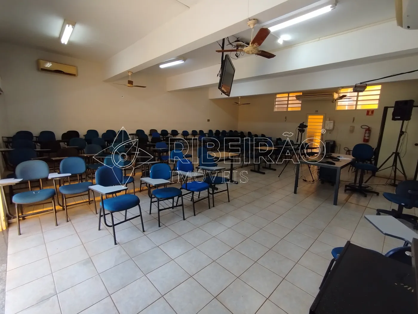 - Sala 1 piso Térreo: aproximadamente 100 m², cadeiras universitárias, Datashow, som, tv, computador quadro branco, ventiladores de teto e ar-condicionado.