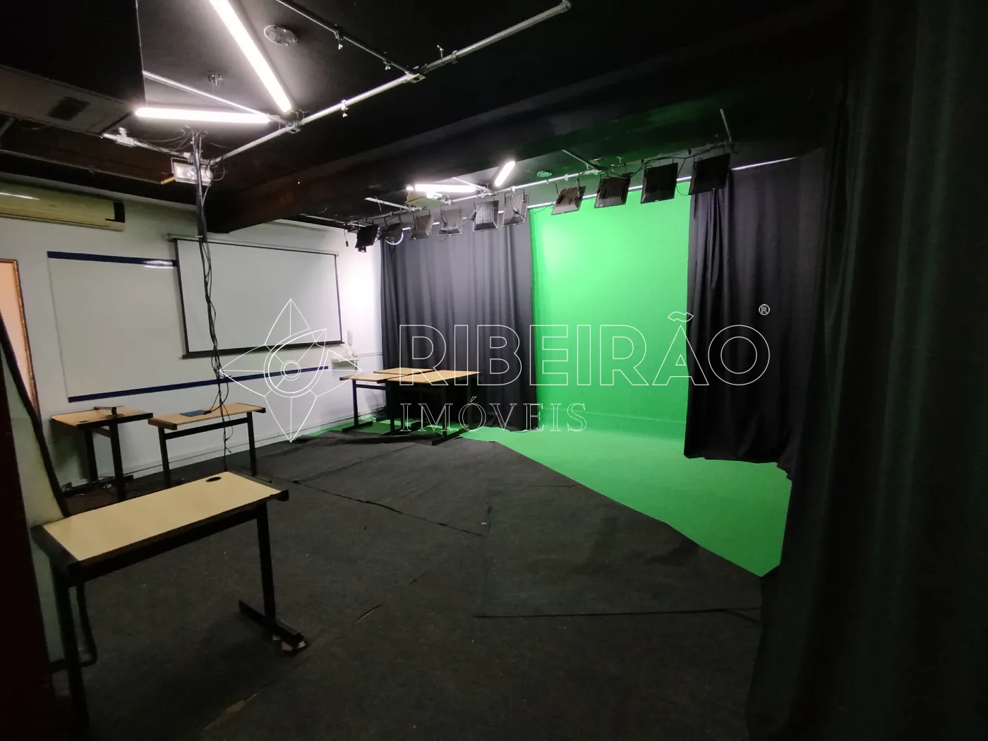 - Sala 2 piso Superior: aproximadamente 40 m², iluminação e acústica para estúdio, carpete, Datashow, quadro branco, ventiladores e ar-condicionado, um banheiro.