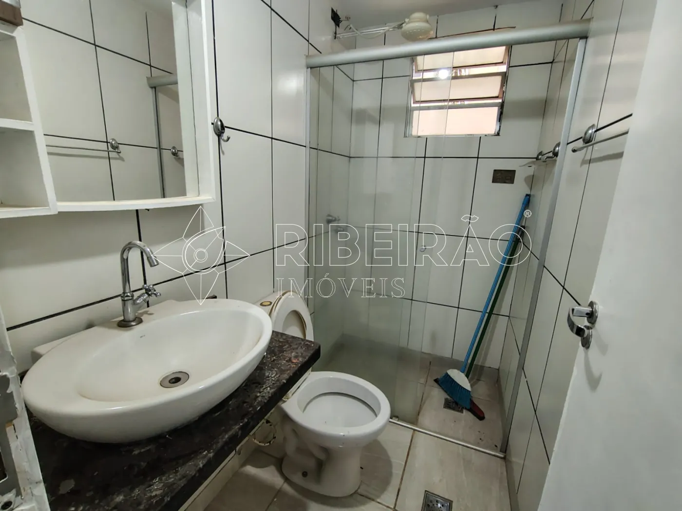 - 1 banheiro com armário, box e espelho;