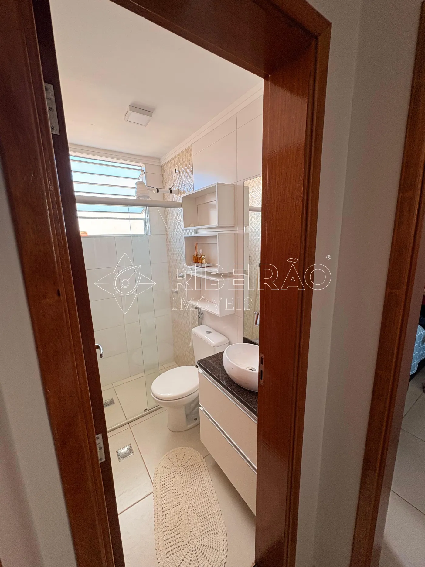- 01 banheiro com armário, espelho e box;