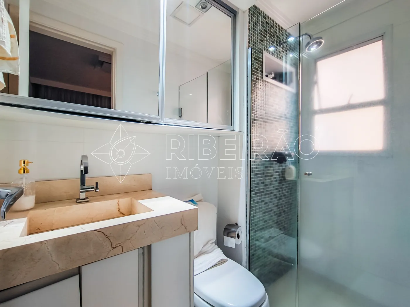- 1 banheiro com armário, box e espelho;