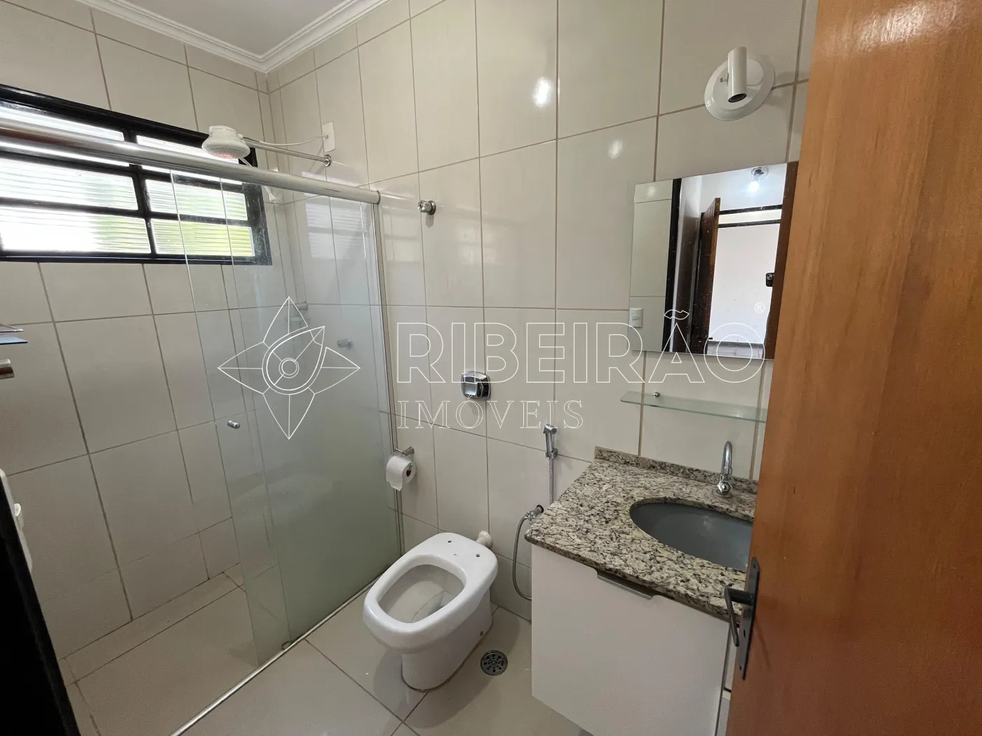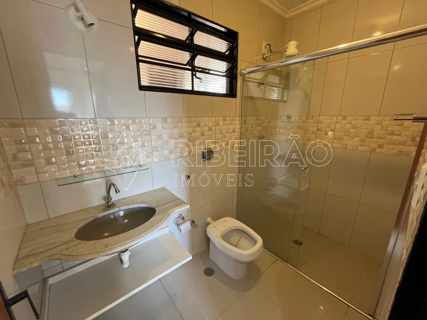- 1 banheiro com armários, box e espelho