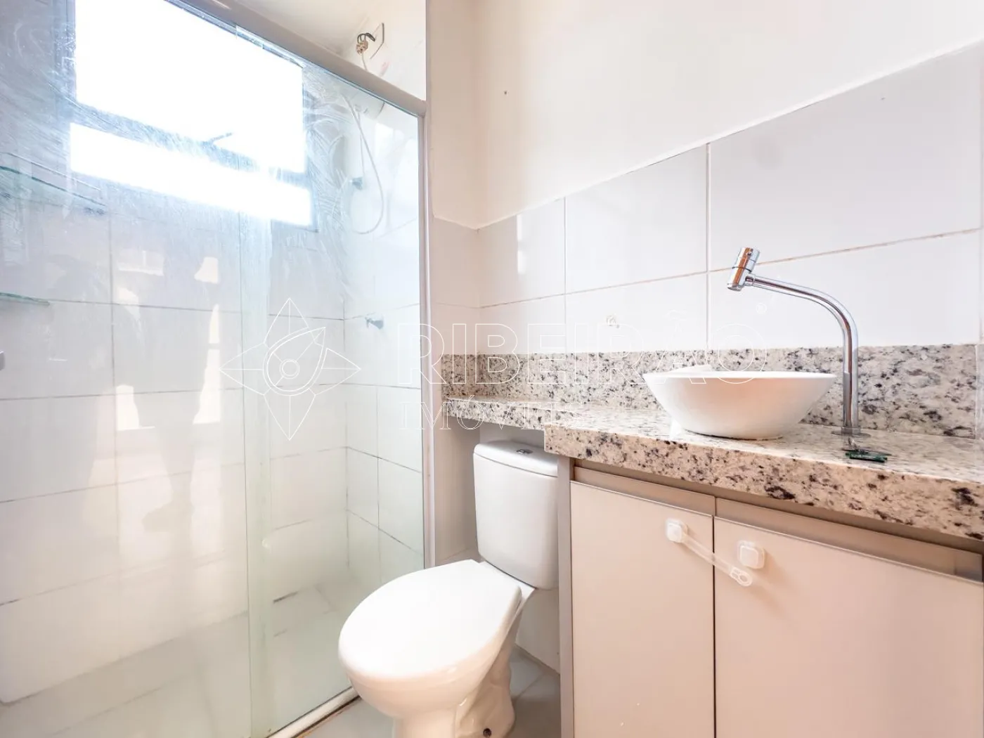 - 01 banheiro com armário, espelho e box;