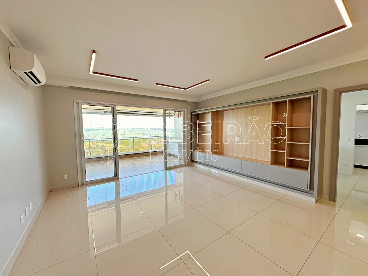 - Living 2 ambientes com ar-condicionado e painel de TV