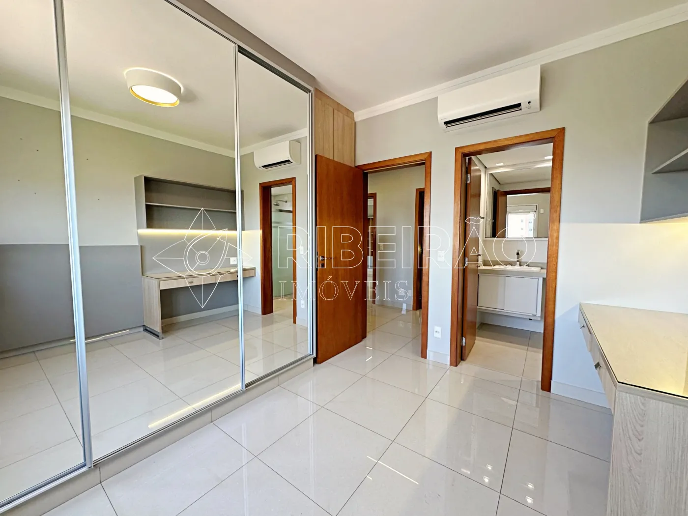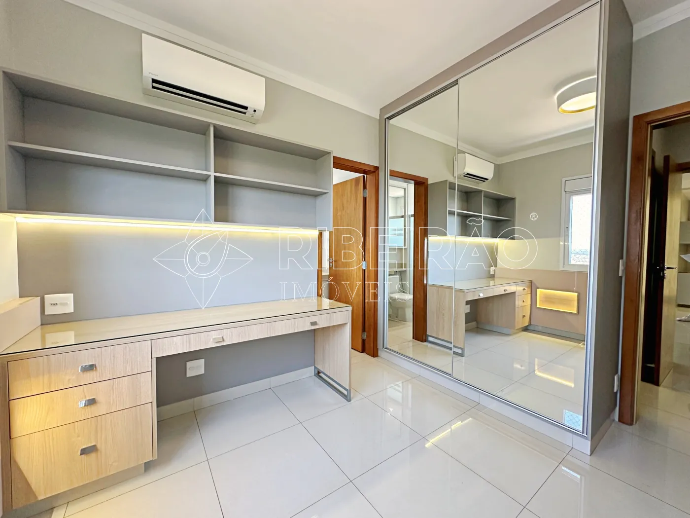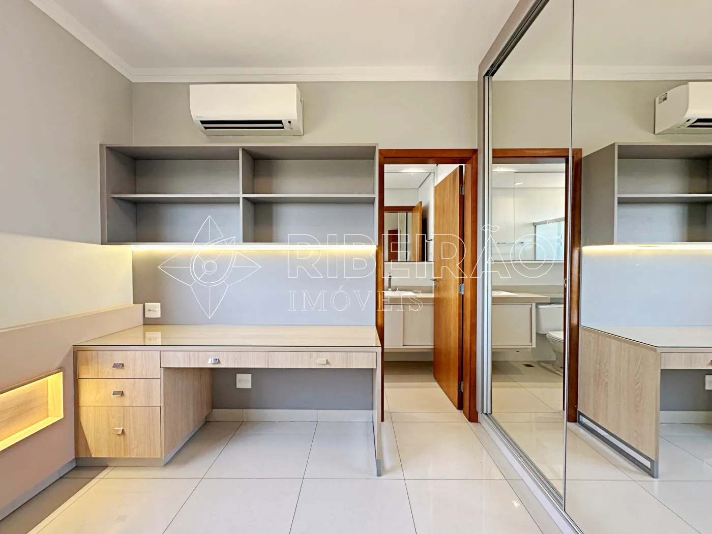 - Banheiros com box, armários e espelhos