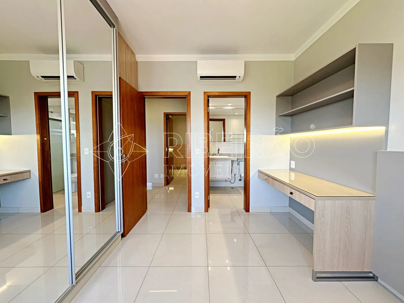 - 4 dormitórios sendo 3 suítes, todos com armários e ar-condicionado e persianas