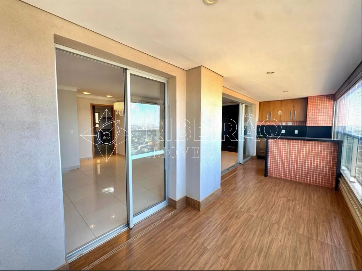 - Sacada gourmet com fechamento em vidro e churrasqueira;