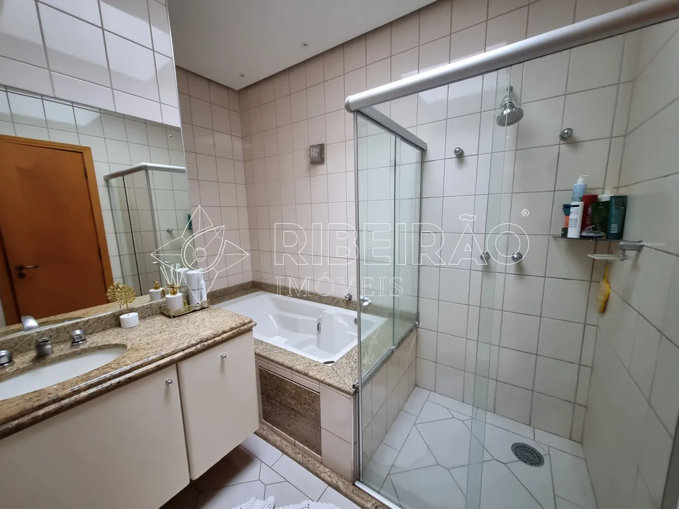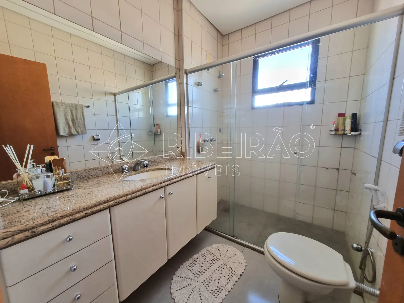 - Banheiros com armário, box e espelho;