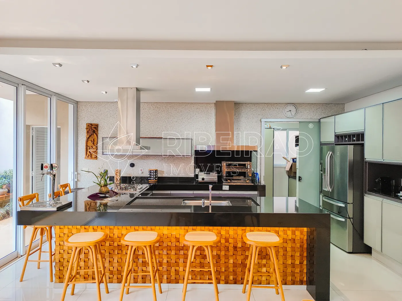 - Área gourmet climatizada com armário, churrasqueira, coifa e chopeira;