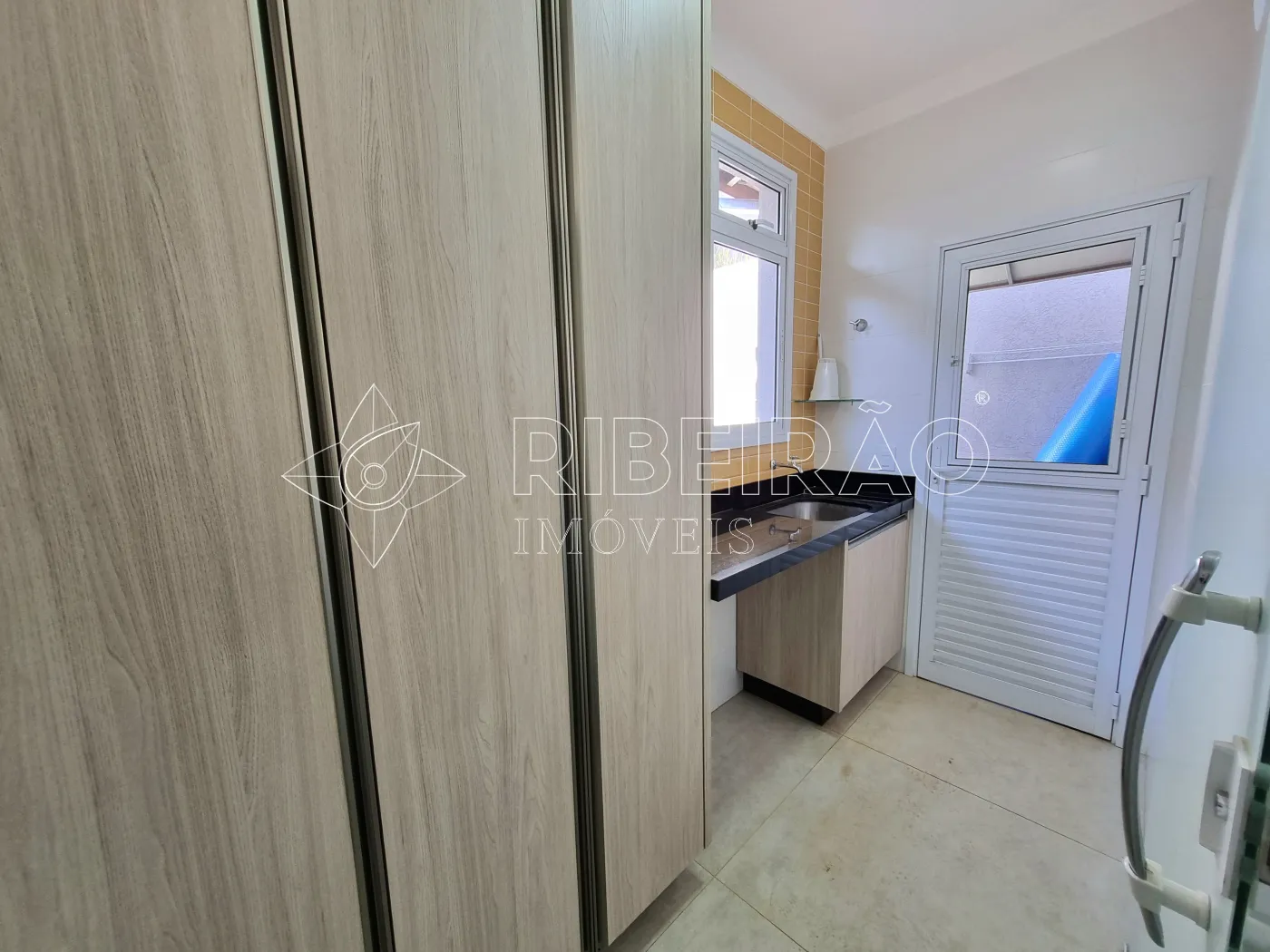 - Lavanderia funcional com armários sob medida.