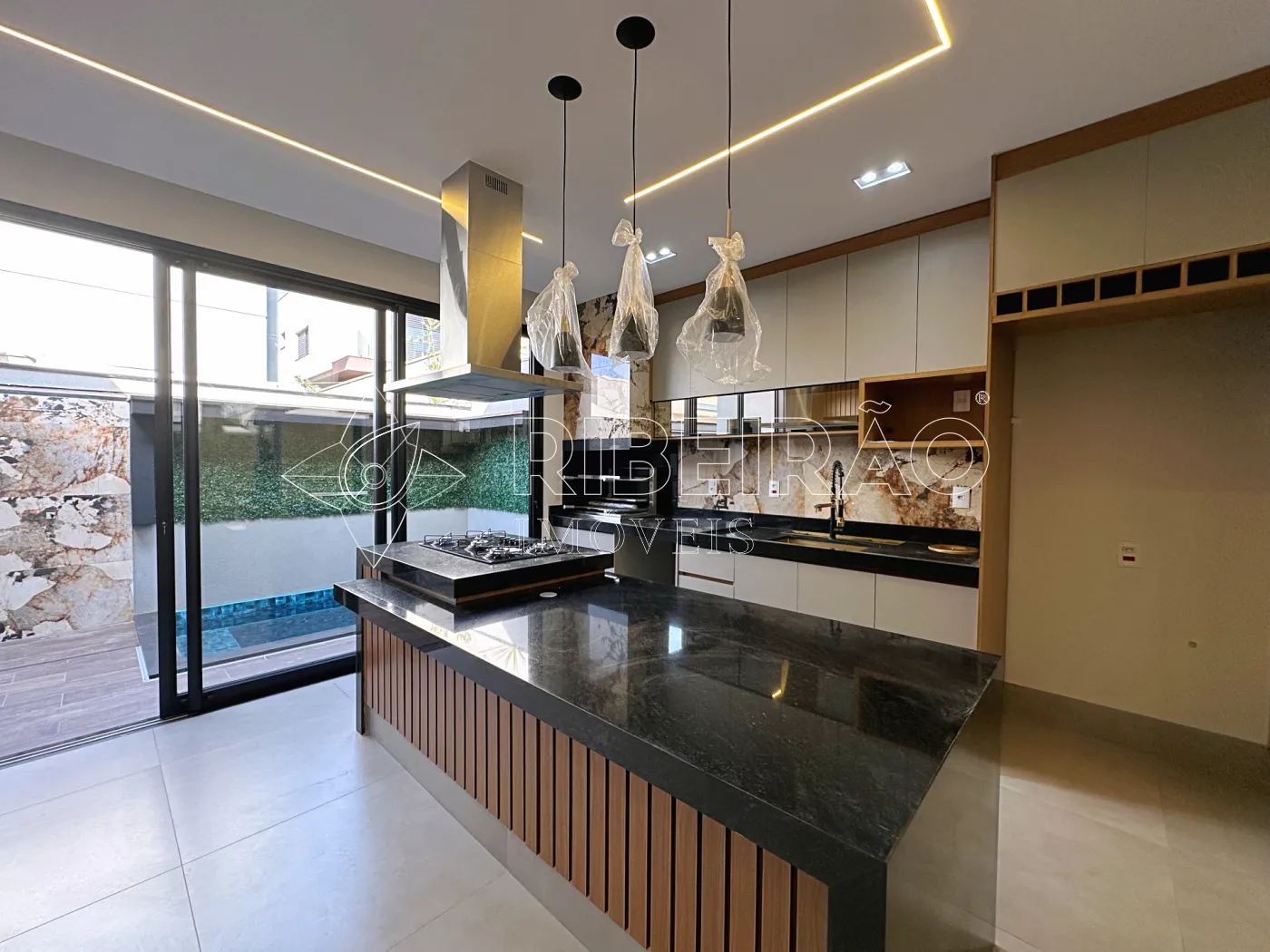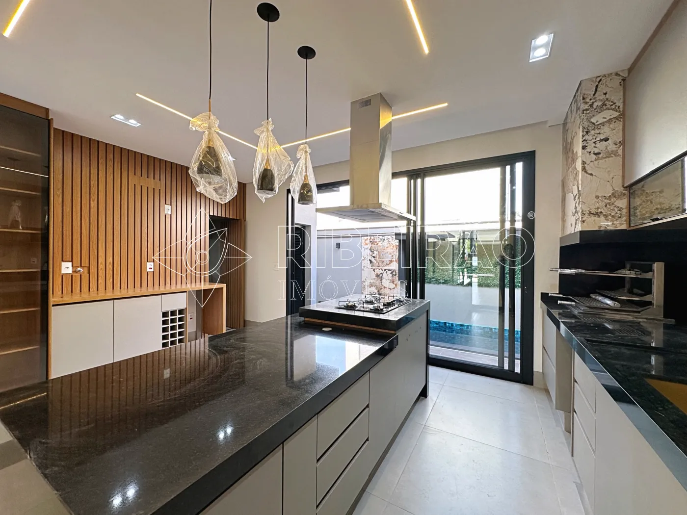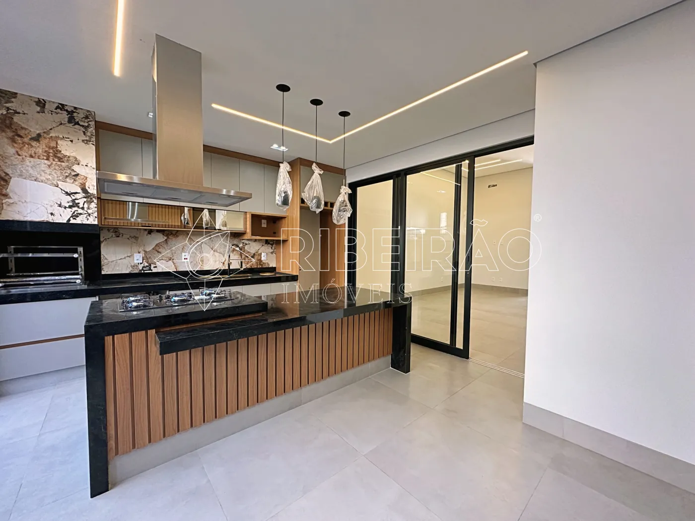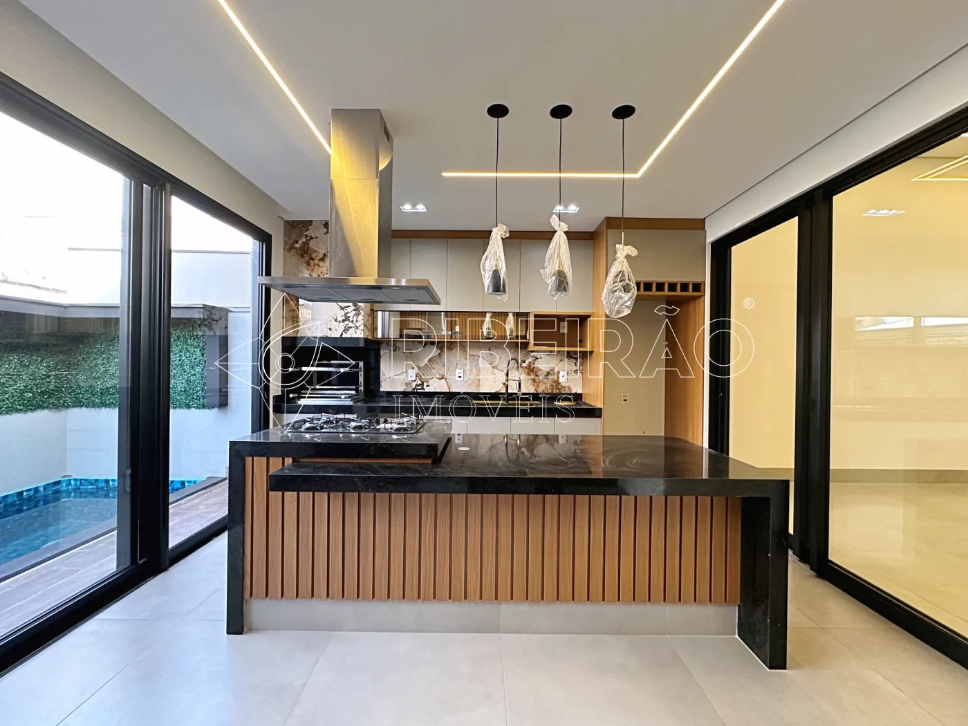 - Cozinha Gourmet com churrasqueira, armários planejados, fechamento em vidro, coifa e cooktop