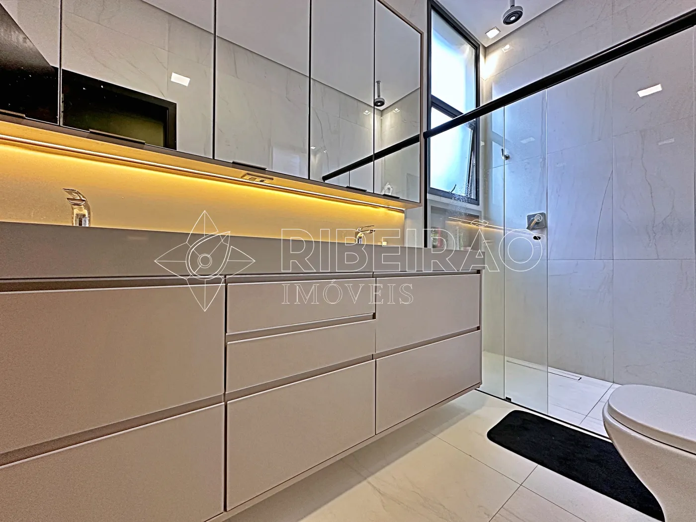 - Banheiros com box, armários e espelhos
