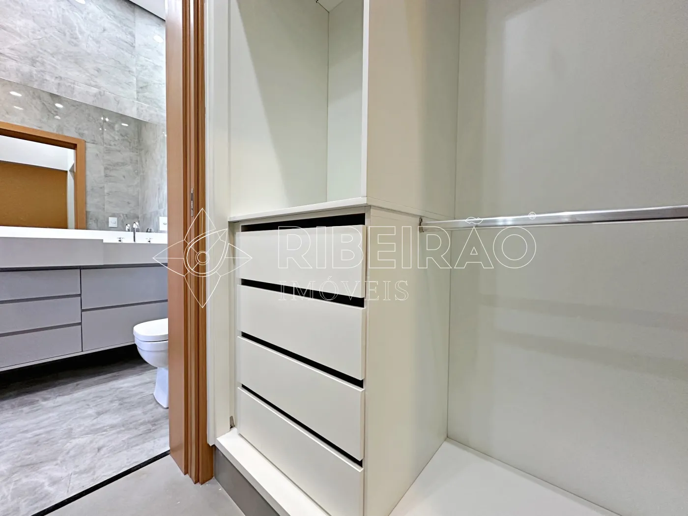 - Banheiros com box, armários planejados e espelhos