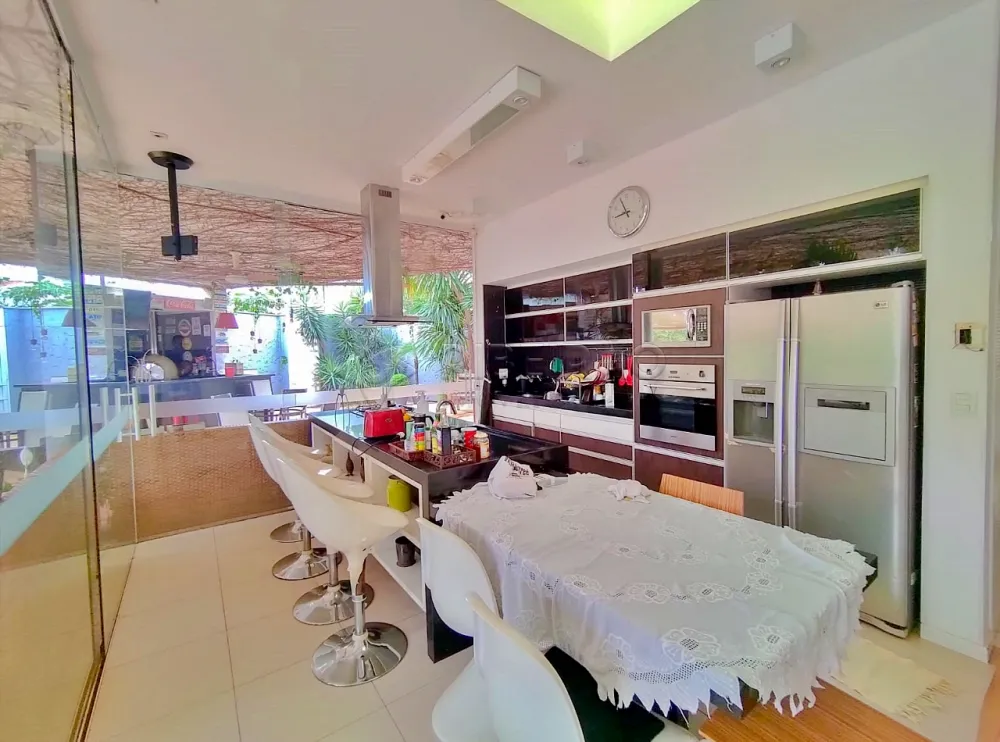 Casa térrea, 05 dormitórios com armários planejados sendo 03 suítes, hidro, ar condicionado, piscina e churrasqueira.